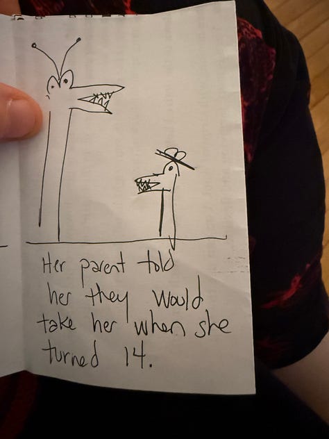 The tiny book will be below! But I have to get dressed, take my kid to sushi, and open Curious & Kind for today’s Creative Club.