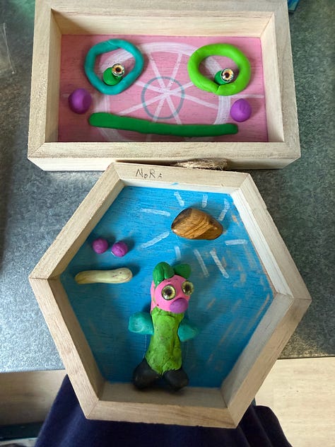 I played a very distracted game of chess while I answered the curious questions of the kids, and set them up to make monsters. And my chess partner won…gloriously, though accused me of not paying enough attention. He was right. But I still think he won fair and square.