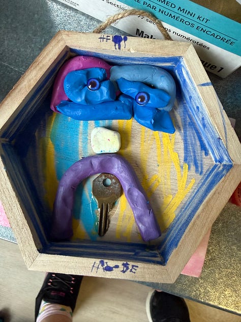I let them into the suave, showed them the carpet for reading and the Lego table and the tiny toy-food truck…one of the kids grabbed the giant axolotl stuffy and I asked if I could leave them there.