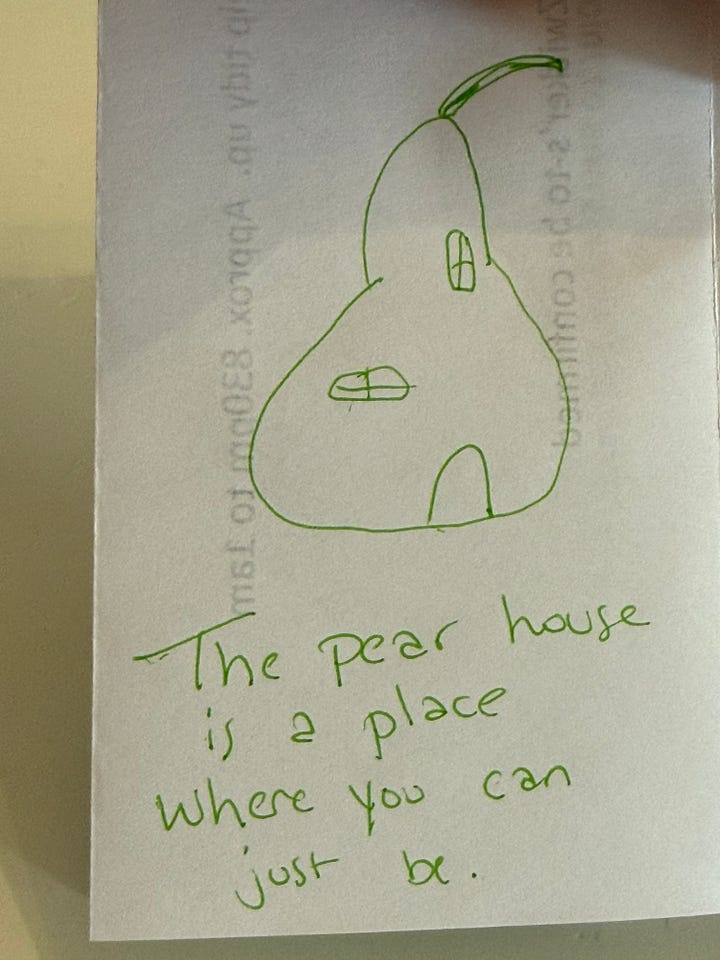 The Pear House sounds so welcoming, and so undemanding at the same time. 🥰